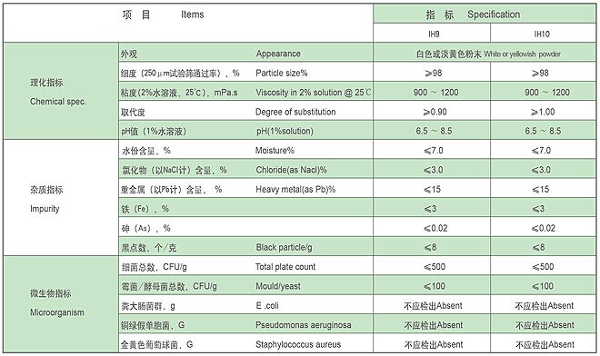 Notas: produtos CMC com indicadores diferentes podem ser fornecidos de acordo com as necessidades do cliente.